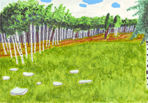 Художник Аси. "Берёзовая роща на Ай-Петри". 2018. Бумага, акварель. 21X29,7 см.