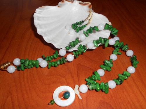 стекло, крашеный коралл, полудрагоценный камень, перламутр, металлическая фурнитура с серебряным покрытием